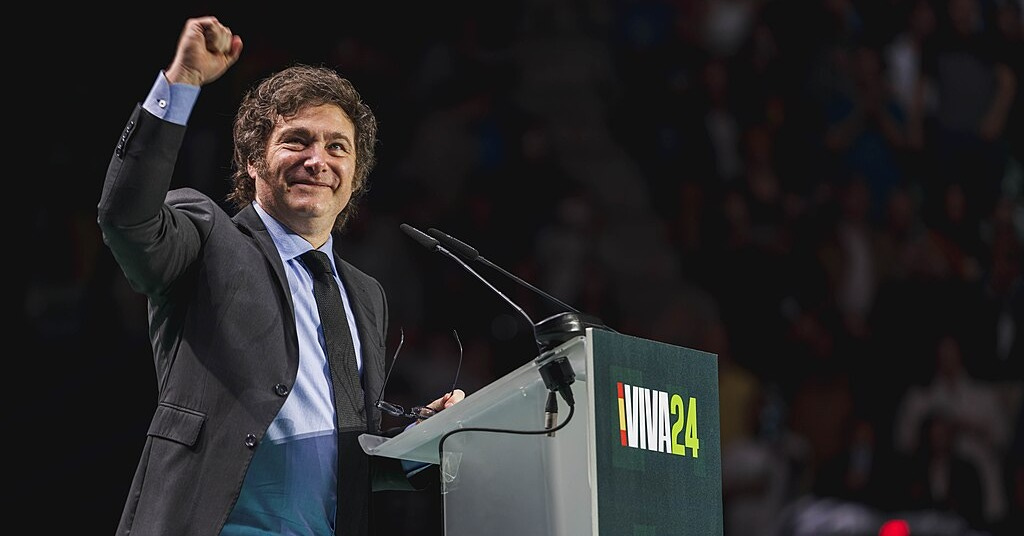 Image: Javier Milei at his inauguration in the Salón Blanco in 2023 (photo: Cancillería Argentina / CC BY 2.0)